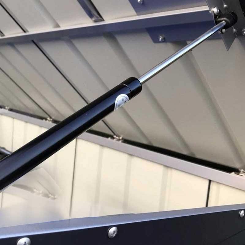 The walls are made of thick sheet steel, which is not only resistant to rust and scratch resistant, but also looks great. This store was built to withstand weather systems that are much more extreme than ours. With a robust framework and a lockable bolt (padlock not included), it's an attractive and solid bicycle shed, that will cope with the worst British storm.