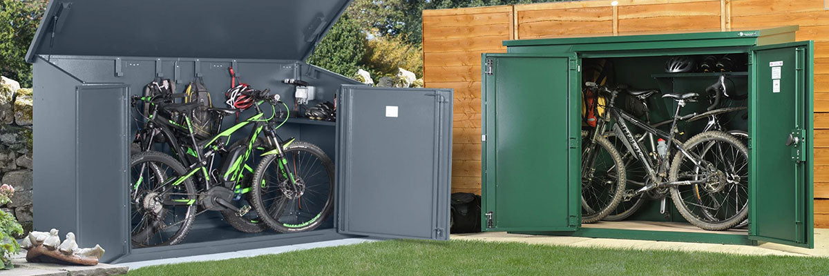 These secure metal bike stores and garden sheds are built to last, requiring very little maintenance while offering excellent protection for your bikes, garden tools and furniture, even golf clubs and other sports equipment.